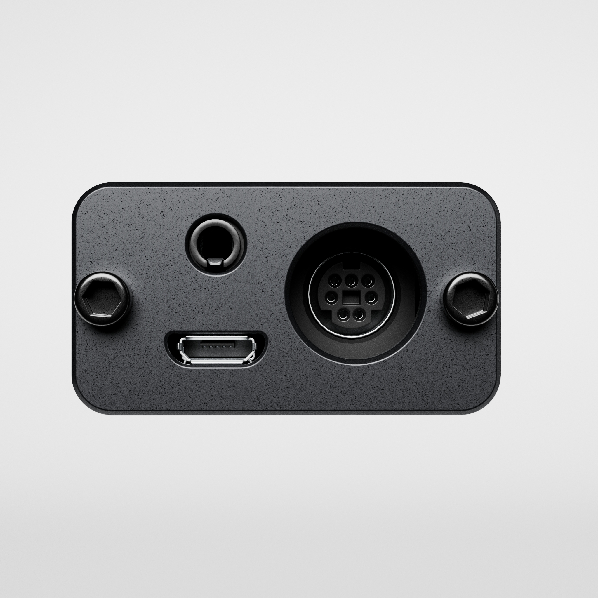 Then, connect the Mixbox to your phone using the DIN to USB-C cable (included), or the optional DIN to Lightning cable for iPhone 14 and earlier.