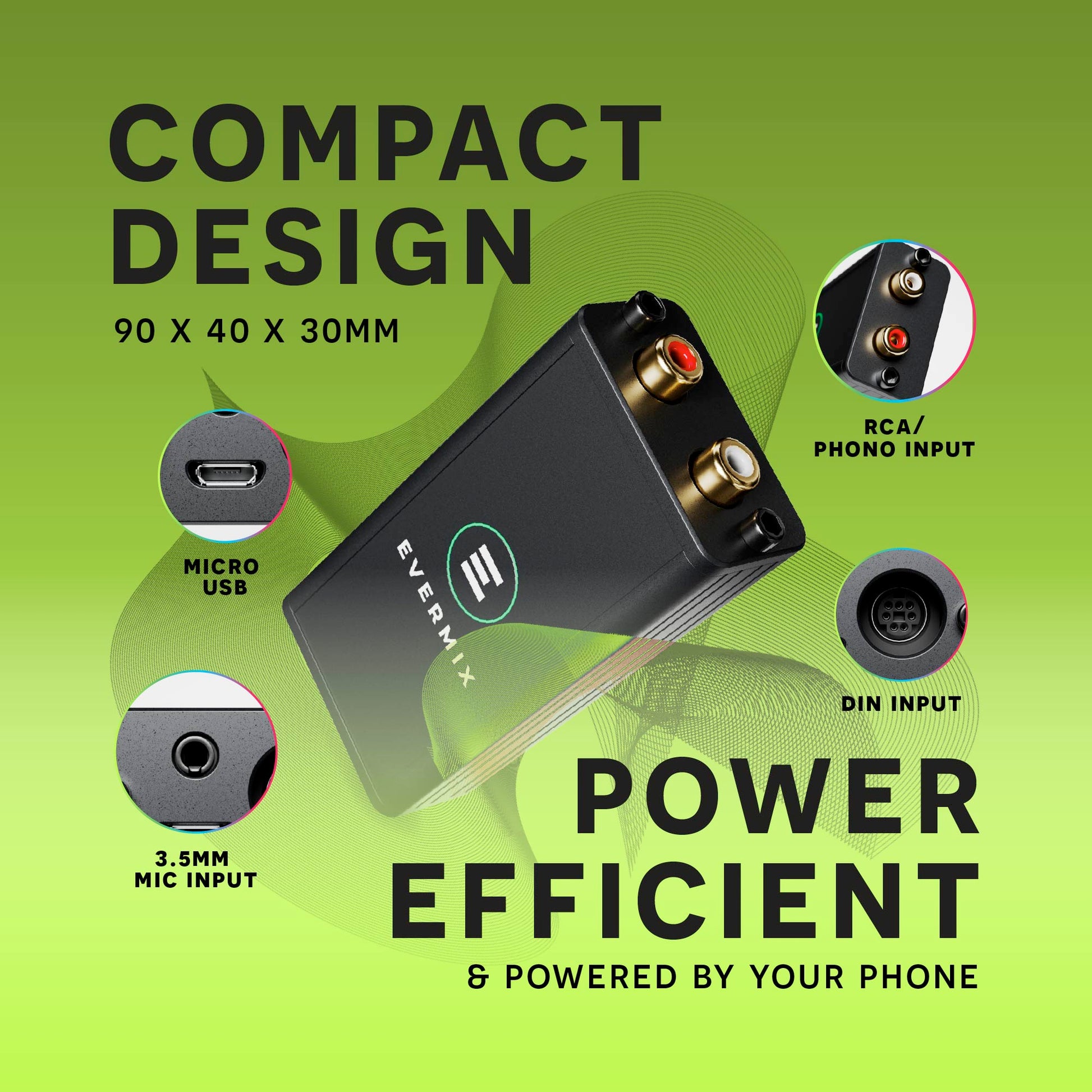 The EvermixBox5 records professional WAV-quality audio directly to your phone.